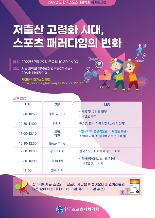 - 주제: 저출산 고령화 시대, 스포츠 패러다임의 변화