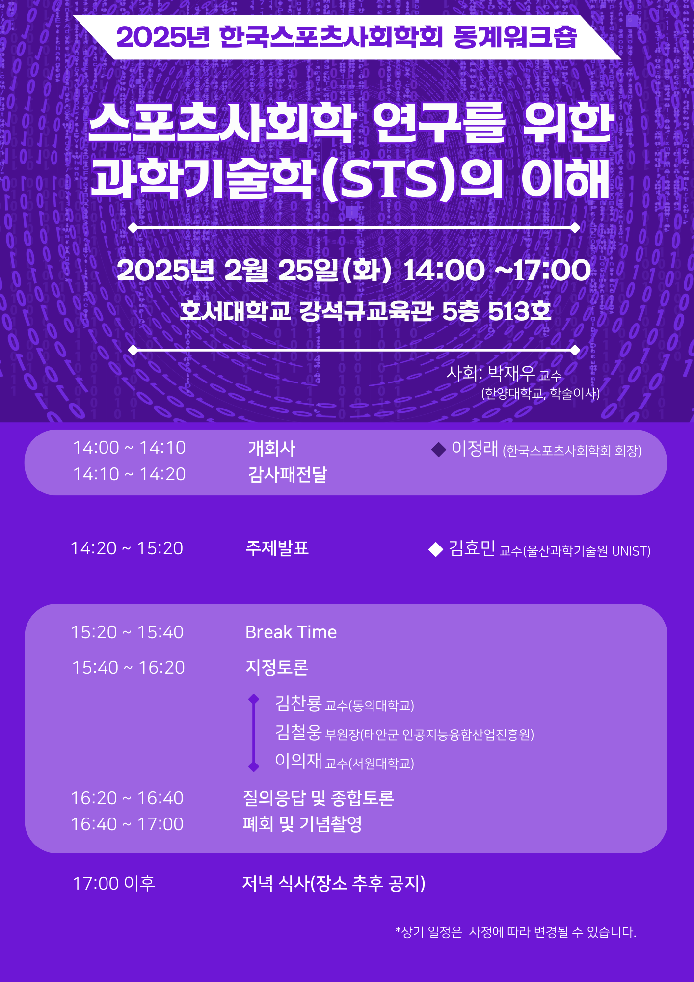 2월 25일(화) 「2025년도 한국스포츠사회학회 동계워크숍」안내드립니다.