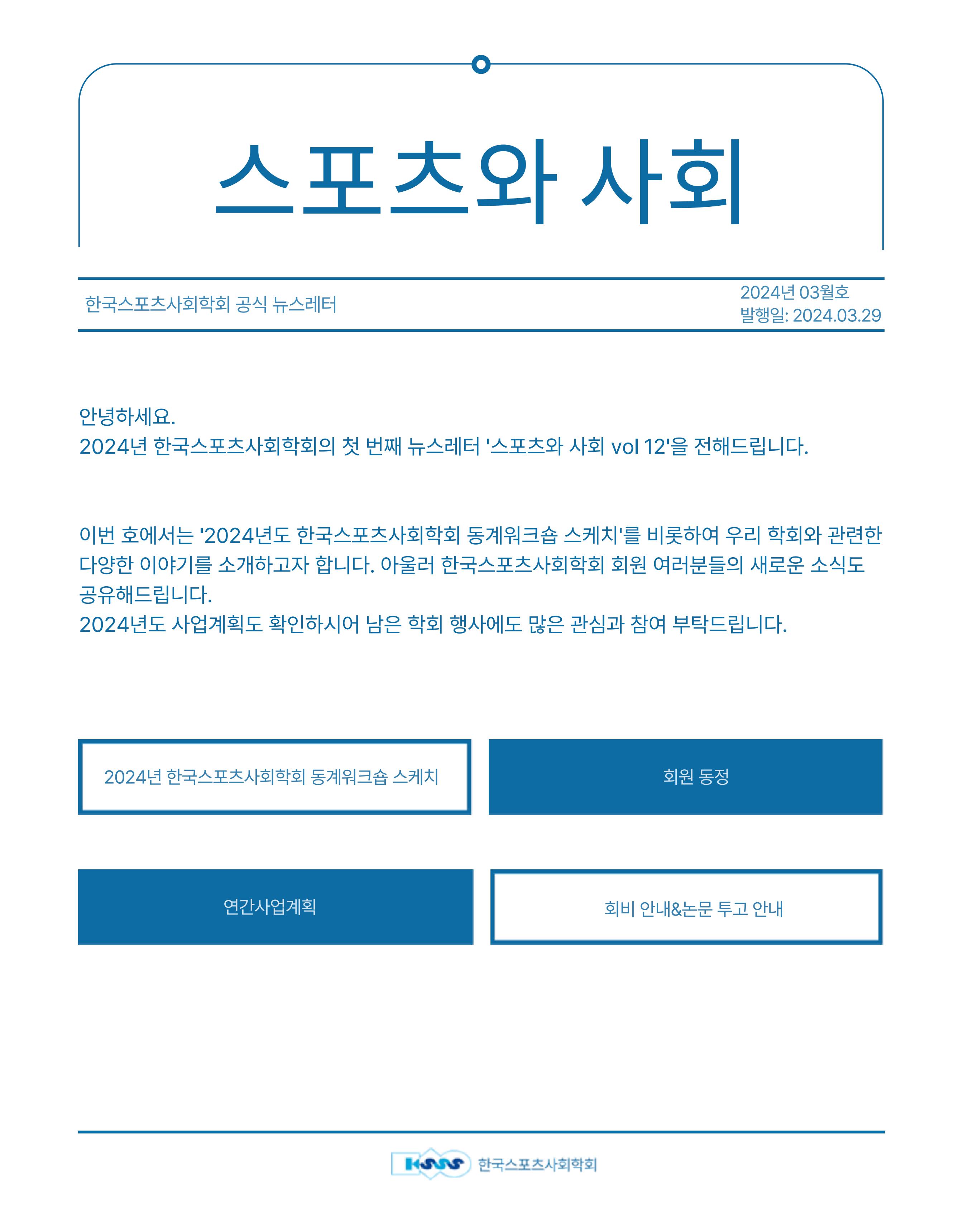 한국스포츠사회학회 뉴스레터 [스포츠와 사회 vol. 12]