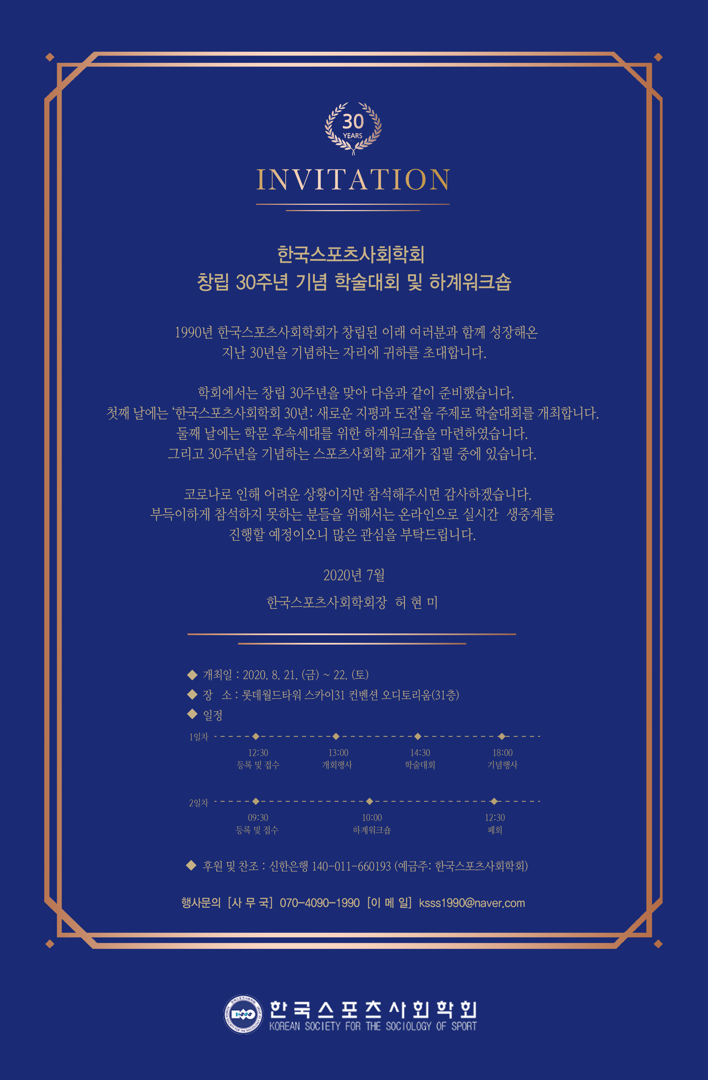 [긴급공지] 8. 21~22. 창립 30주년 기념 학술대회 및 하계워크숍 *실시간 온라인 개최 *